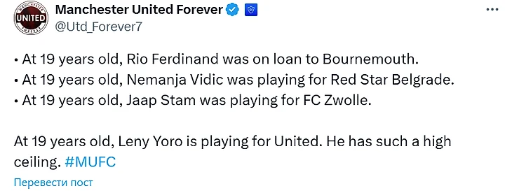 Многие хвалили парня, в том числе один из крупных фанатских аккаунтов. Он написал следующее: «В 19 лет Рио Фердинанд отправился в аренду в «Борнмут». В 19 лет Неманя Видич играл за «Црвену Звезду». В 19 лет Яп Стам был в «Зволле». В 19 лет Лени Йоро в «Юнайтед». У него очень высокий потенциал».