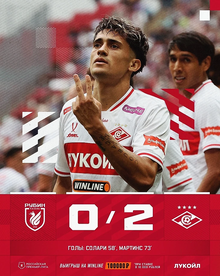 В гостевом матче 6-го тура МИР РПЛ с «Рубином» красно-белые забили два мяча во втором тайме, надежно сыграв в обороне, и набрали три очка!