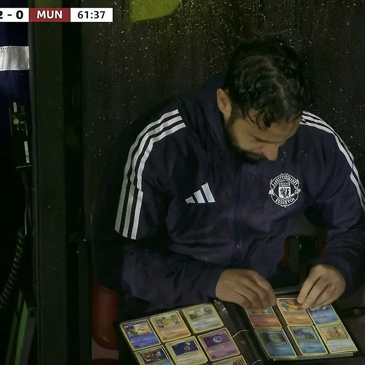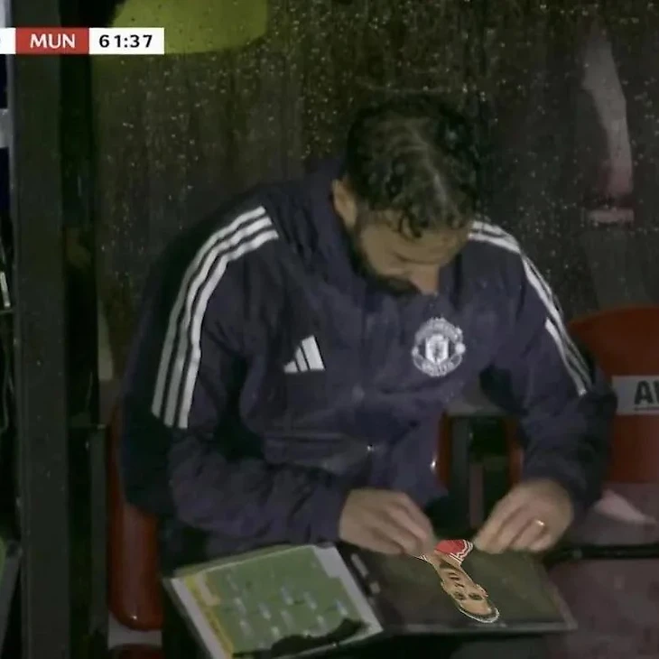 К 30-й минуте матча Кубка лиги «Манчестер Юнайтед» летел в два мяча против команды из четвертого английского дивизиона – «Гримсби Таун». На 62-й минуте оператор трансляции выхватил кадр: Рубен Аморим под проливным дождем размышлял над тактической доской.