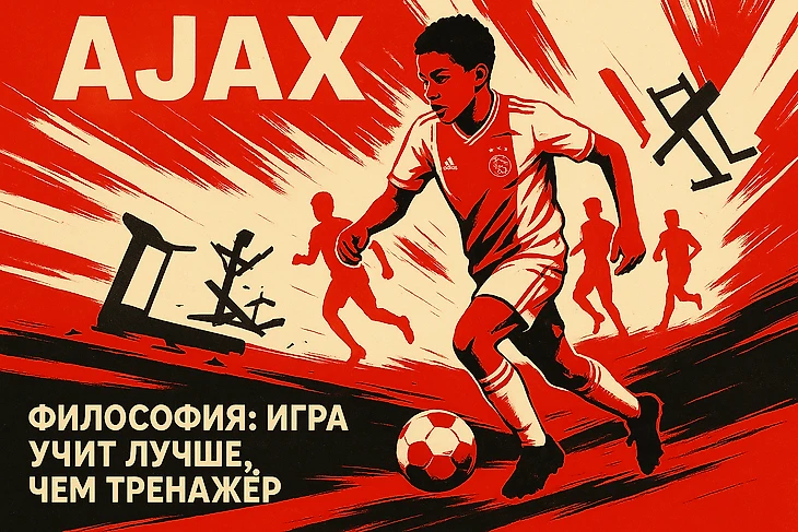 «Аякс» — это не академия, а фабрика мышления. С первых лет детей не «натаскивают» на одну позицию: сегодня ты защитник, завтра — плеймейкер. Цель проста: понимать игру целиком.