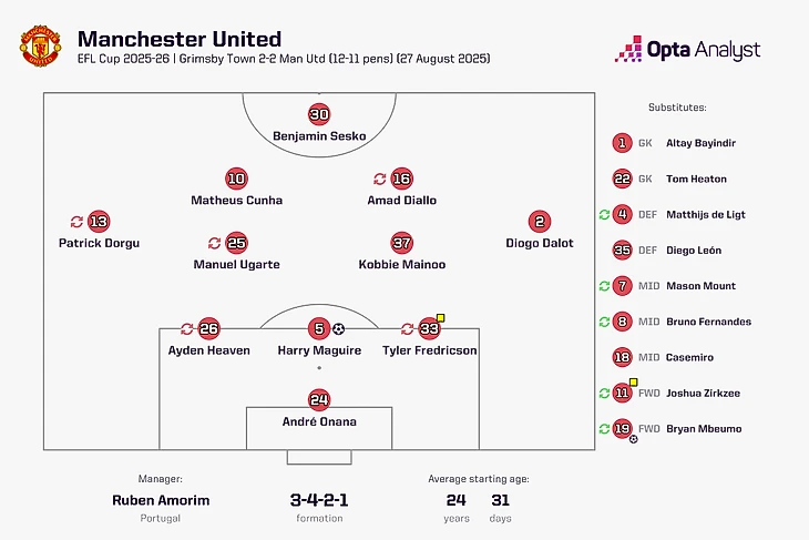 Однако отказ Аморима от гибкости часто идёт во вред команде. Яркий пример: было ли действительно необходимо выпускать трёх центральных защитников в гостевом матче против «Гримсби» из Лиги 2 в среду?
