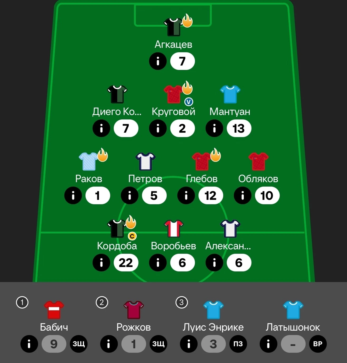 Да, Круговой на фланге атаки ЦСКА тоже имеет шансы на гол/ассист, но у него два подряд плохих матча по очкам, он числится защитником, а тут ещё и соперник такой. Поэтому погреет банку тур-другой. Петров же меняет Облякова, так как видятся его шансы на результативные действия против «Акрона» выше, чем у Облякова против «Краснодара».