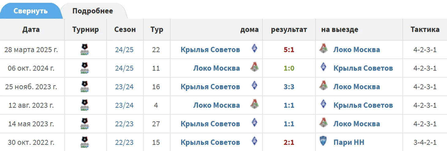• В 2019 году ещё при Божовиче голы забили: Джано с передачи Самедова, а также в меньшинстве забил Шейдаев. Но дубль Антона Миранчука не дал «Крыльям» возможности увезти из Москвы 3 очка.