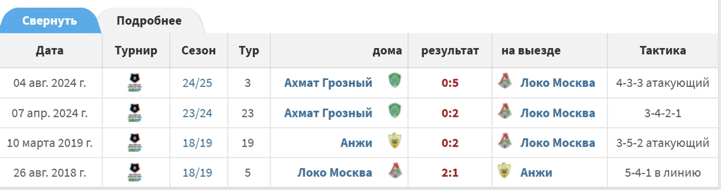 Как верноподметил Иван Долинин, Магомед Адиев играл против «Локомотива» в качестве тренера 4 раза, и все матчи проиграл с общим счётом 1:11 (2 раза, когда тренировал «Анжи» – 2:1, 2:0 и 2 раза, когда тренировал «Ахмат» – 2:0, 5:0). Против Галактионова Адиев играл 2 раза, как раз когда тренировал «Ахмат».