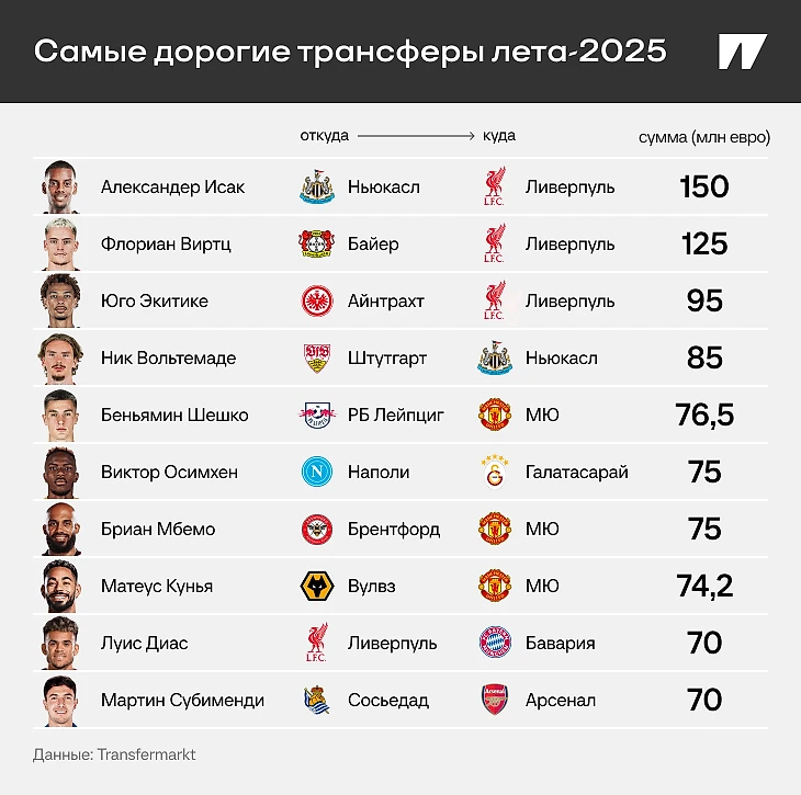 Летнее трансферное окно – все. Пора взглянуть на главные сделки в 2025-м, особенно мощно потратился «Ливерпуль».