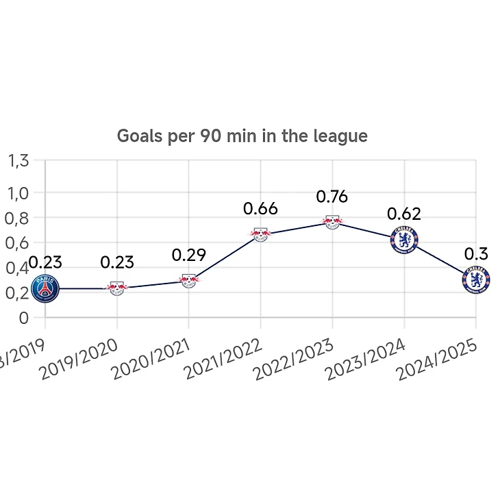 Кристофер Нкунку сочетает в себе понемногу качества всех: он и техничен, и агрессивен, и хорошо играет между линиями, и способен играть без мяча. Единственное, в чём ему стоит прибавить — это нацеленность на ворота. В АПЛ у Нкунку 3 гола при xG 4.83 и 313 минут на гол (по данным SofaScore).