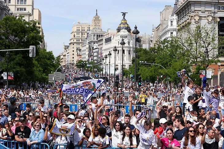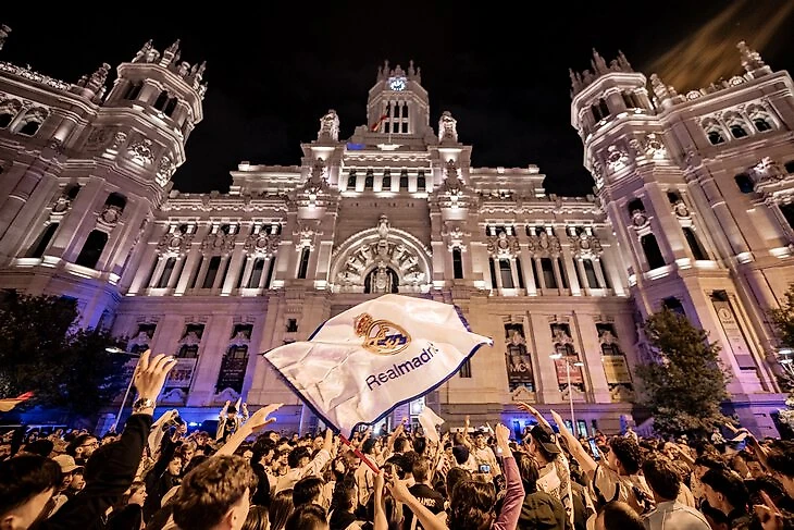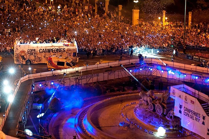 В дни, когда мадридский «Реал» празднует большие победы, все вокруг площади Сибелес перекрывают – повсюду белое море.