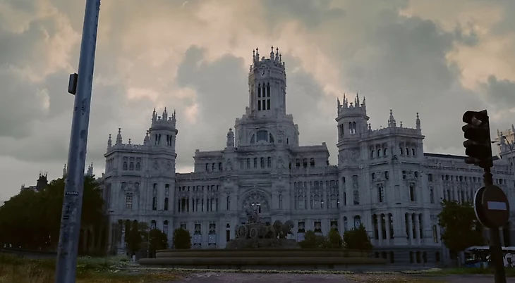 Действие клипа хоть и происходит в сеттинге постапокалипсиса, но место узнается легко – это та самая площадь Сибелес. С фонтаном древнегреческой богини Кибелы, которая и дала имя локации. Здесь красивый Дворец коммуникаций и офис главного банка Испании.
