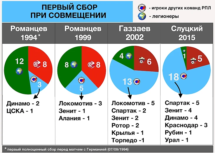 Допустим, в ЦСКА рады отпустить семь человек дорогому братскому коучу. Но, скажем, пять игроков «Локо» тянут на 30 миллионов по трансфермаркету. И эти активы на 10 дней отправляют к управляющему предприятия-конкурента. Та же ситуация была, например, со Слуцким, но в те годы сборная решала спортивные задачи.
