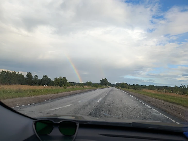 Итак, рабочий день закончен, прыгаем в тачку и мчим в Иваново🚘 Погода переменчива, то солнце, то тучи и дождь🌦 Временами появлялась радуга 🌈