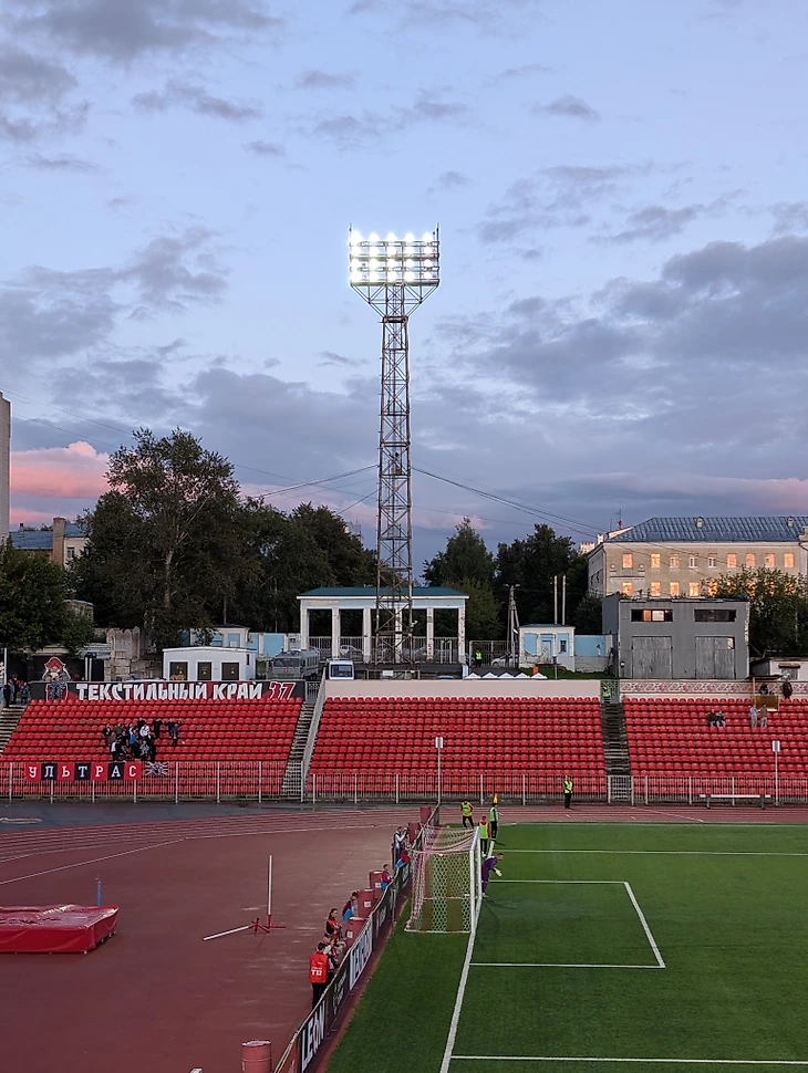 Полтора часа по трассе и городу и мы на стадионе «Текстильщик».