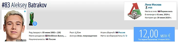 Всё это, конечно, может прозвучать как шутка, ведь Батраков и Роналду — футболисты из совершенно разных вселенных. Один — молодой игрок, пожалуй самый талантливый в стране за долгое время, подающий большие надежды, а другой — легенда мирового масштаба. И даже несмотря на то, что Роналду уже в возрасте и играет не в европейской топ-лиге, всё равно странно видеть их стоимость на одном уровне. Но если цена Батракова растёт, значит, для этого есть причины.