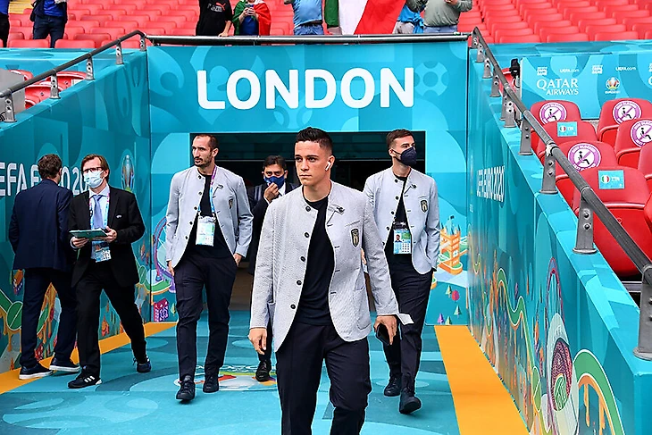 В разные годы Armani одевал в костюмы «Баварию» (в том числе сезон с Пепом Гвардиолой) и сборную Италии. Очень ярко вышло с итальянцами на Евро-2020. Те костюмы посвятили легендарному тренеру Энцо Беарзоту. Верх из легкого хлопка, намеренный эффект небольшой измятости, мягкие черные брюки вдобавок.