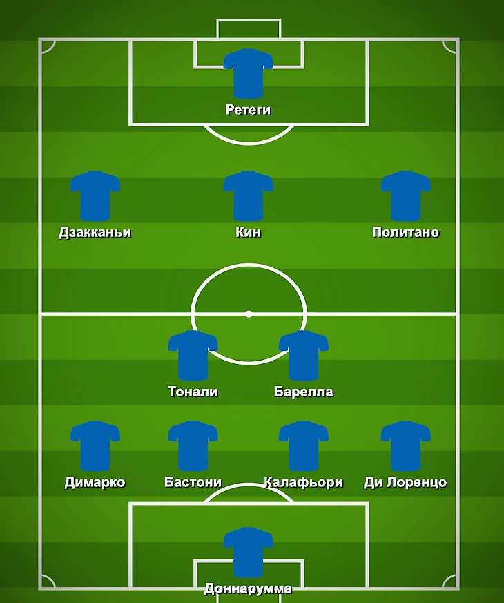 Рассматривался и альтернативный вариант – любимая Гаттузо схема 4-3-3, в которой нашлось место Тонали, Барелле и Локателли. В этом случае на позиции единственного форварда фаворит – Мойзе Кин. Справа же Орсолини составит конкуренцию Политано.