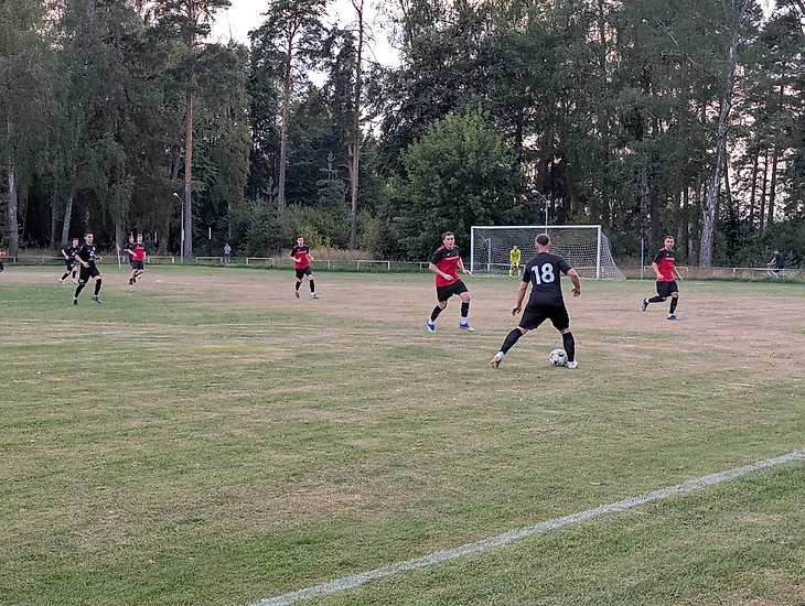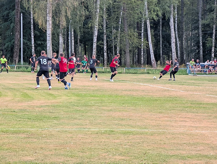 Уже в начале тайма хозяева остались в меньшинстве. Честно говоря, не понял, где судья увидел фол на красную как зрители, пришедшие на матч. После этого арбитра костерили весь матч.