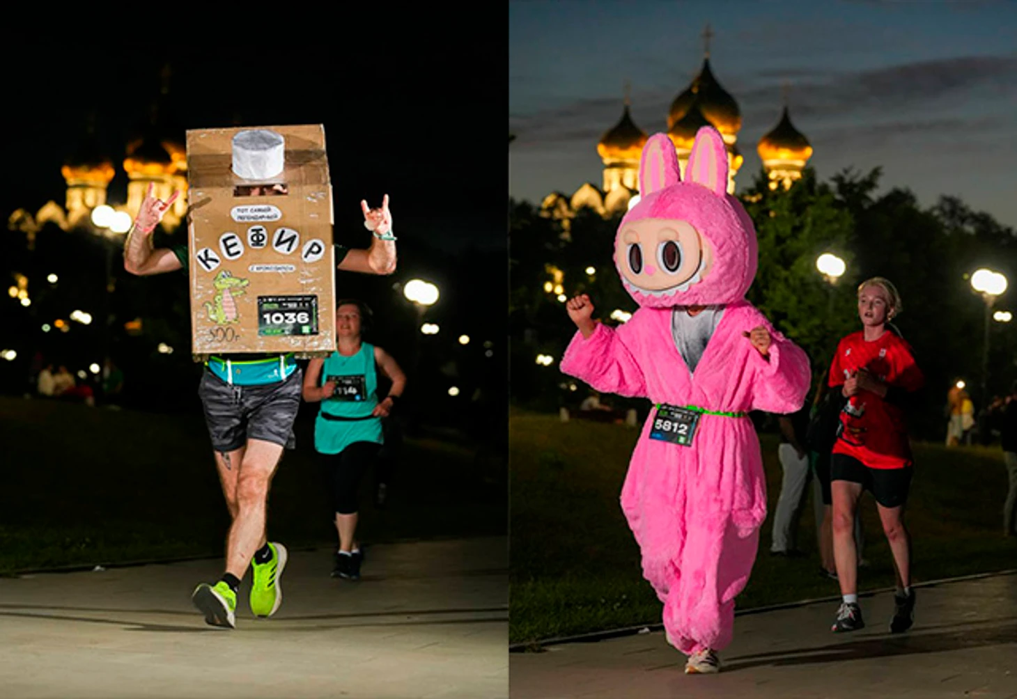 Первый раз бежал в тёмное время суток. Сама идея - кайф. Девчонки в светящихся юбках, ребята в костюмах спайдермена и всё такое. Но есть и минусы. Во-первых, спустя несколько сот метров после старта дорога сужается, места архи мало, если ты бежишь в толпе. Ускориться очень проблематично, придётся бежать в темпе потока и ждать расширения пути. Во-вторых, на четвёртом километре бега стали обгонять быстрые ребята с десятикилометрового забега. Некоторые толкаются, бесятся, что им нет места и приходится тормозить. Соответственно, бесятся и те, кого обгоняют и толкают. Можно понять как тех, так и других. Тут вопрос к организаторам.