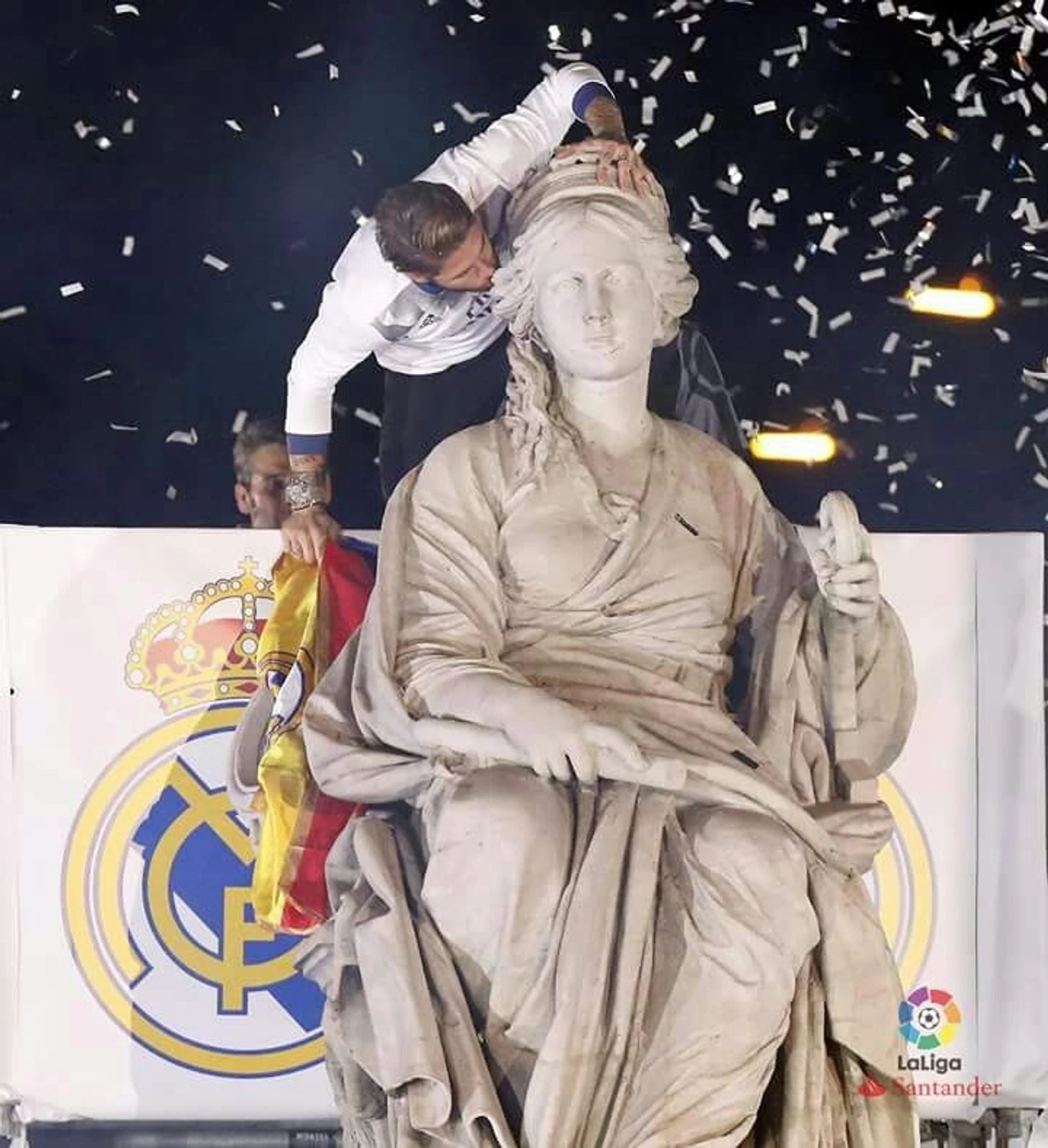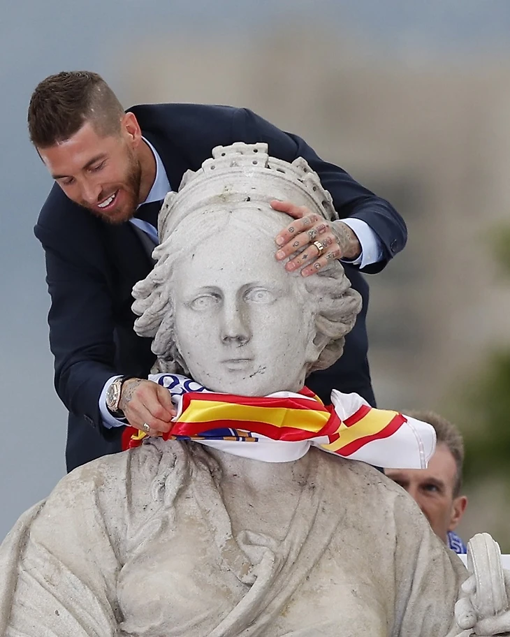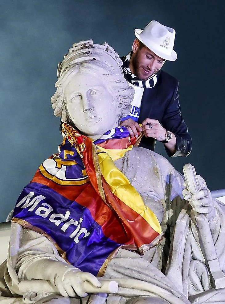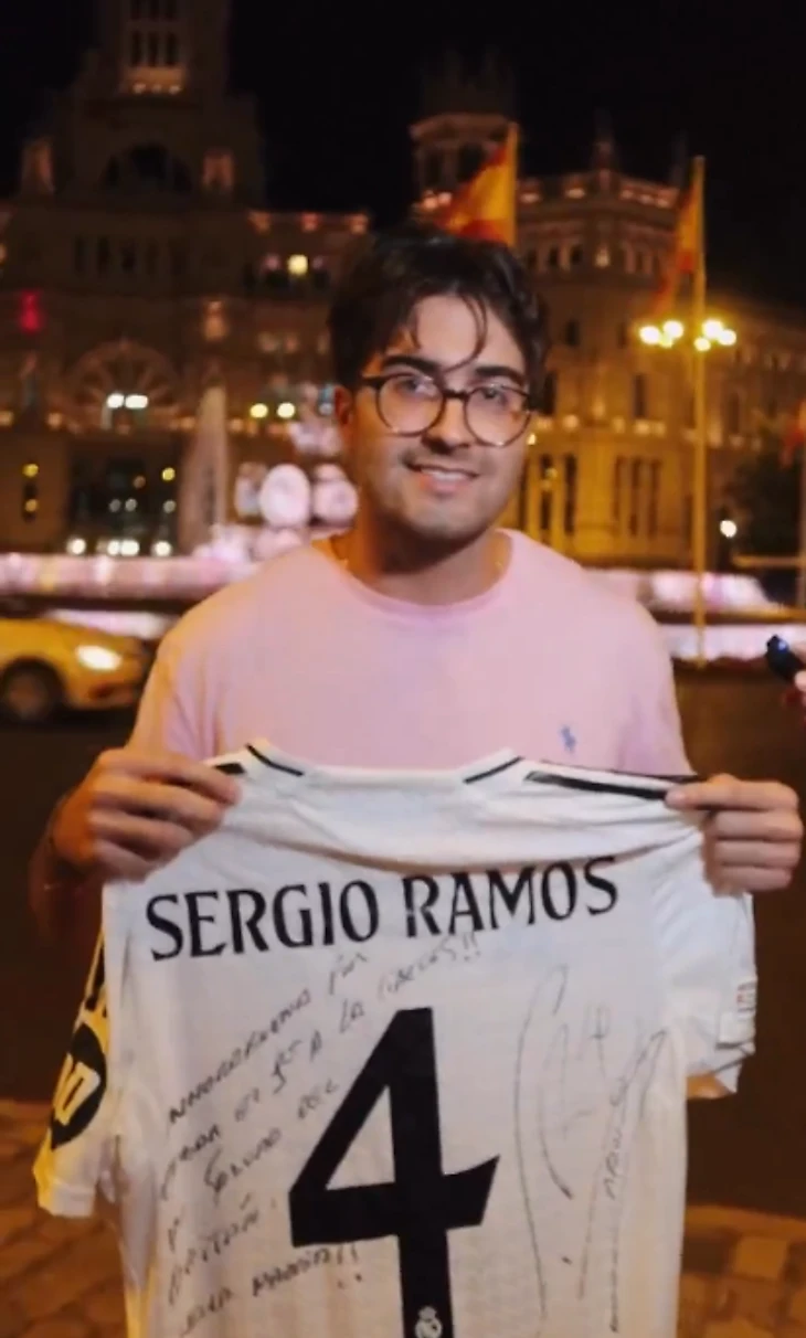 Рамос подписал футболку «Мадрида» со своим именем на спине, подарок защитник оставил, разумеется, у фонтана на площади Сибелес. Подпись на футболке: «Поздравляю с тем, что ты первым прибыл на Сибелес. Привет от капитана. Hala Madrid!»