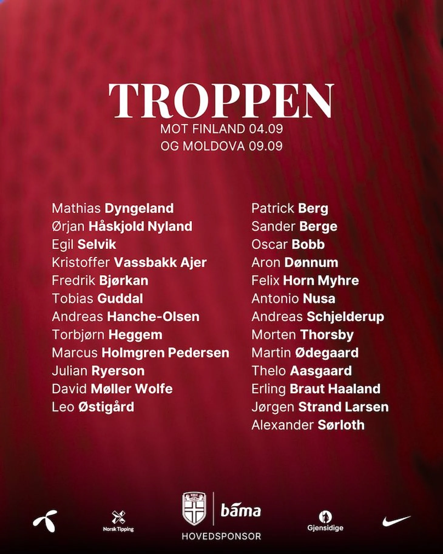 В заявке сборной Норвегии на сентябрьские матчи сразу восемь игроков с двойными фамилиями.