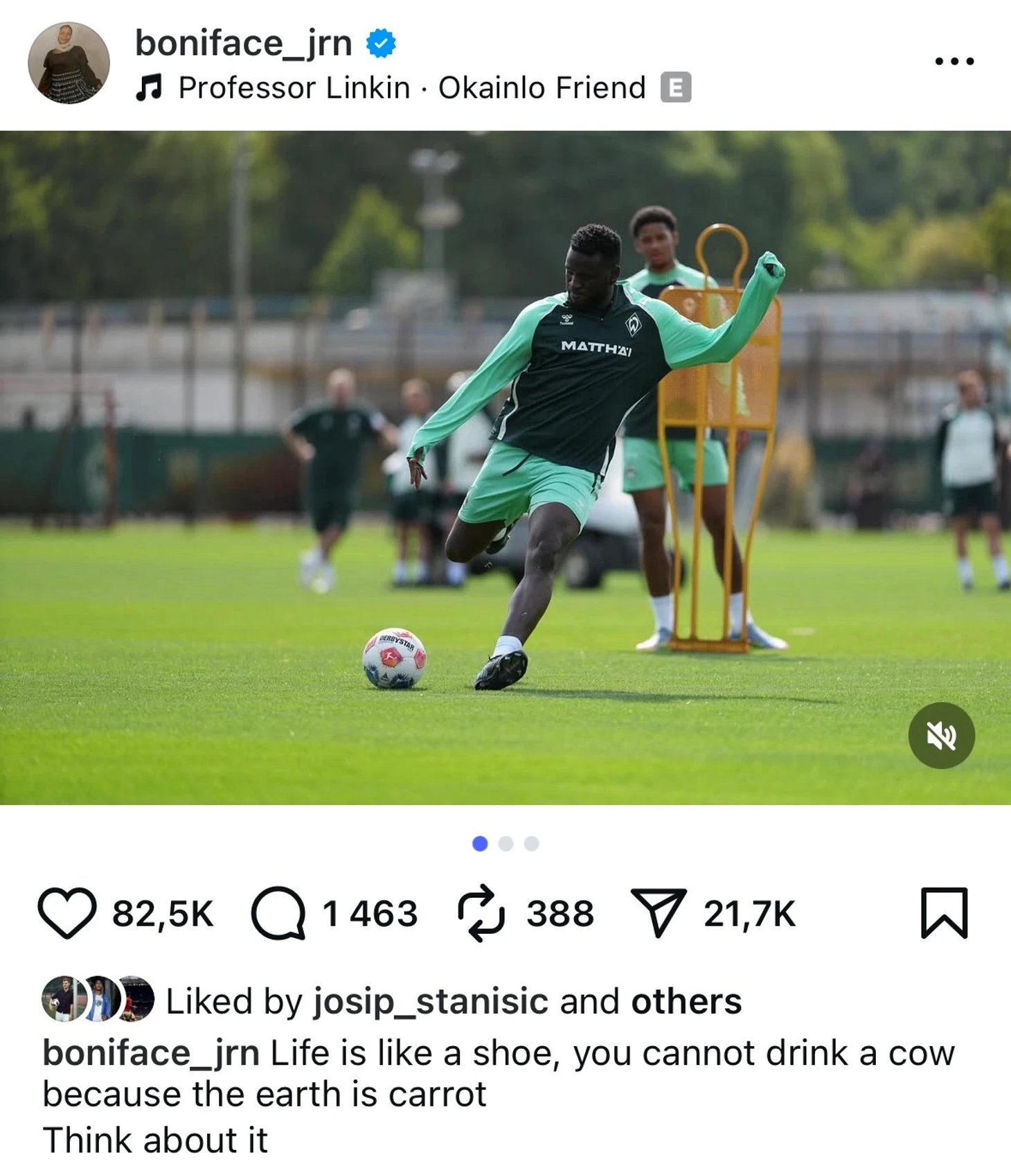 Нигериец запостил свои фотки с тренировки «Вердера», подписав: