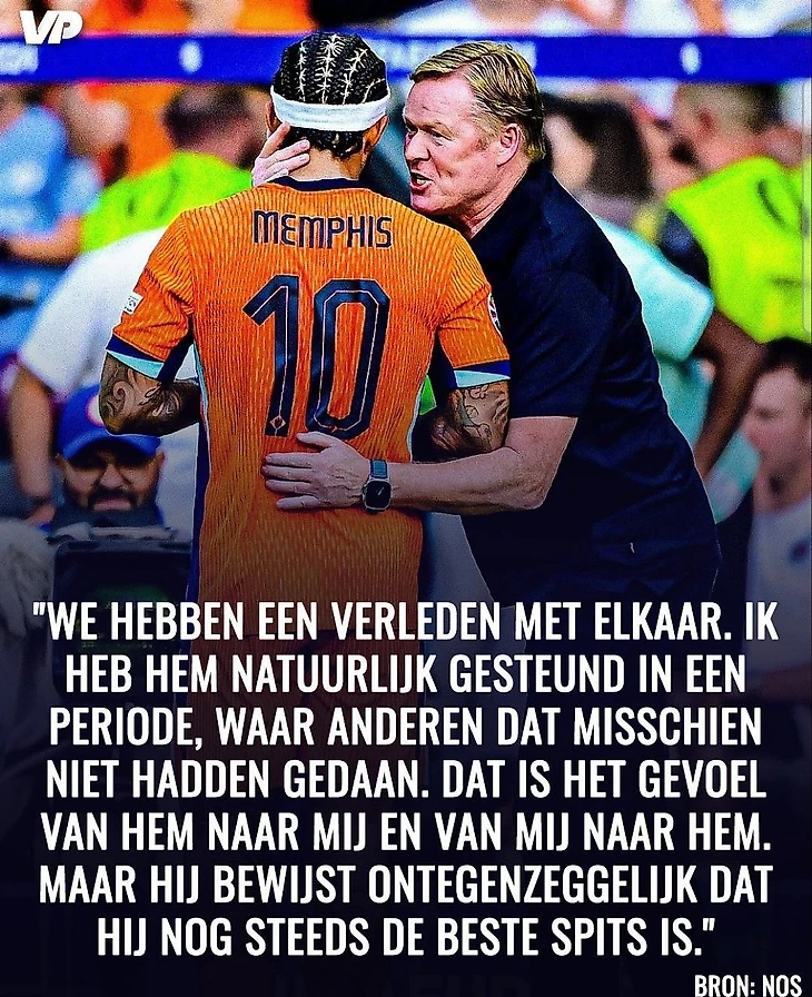 Рональд Куман о Депае: «Нас связывает общее прошлое. Я, конечно, поддерживал его в период, когда другие, возможно, этого бы не сделали. Это чувство идёт от него ко мне и от меня к нему. Но он безусловно доказывает, что по-прежнему остаётся лучшим нападающим».