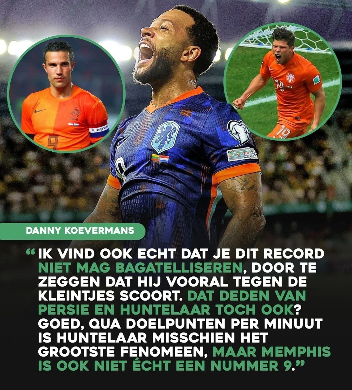 Данни Куверманс: «Я действительно считаю, что это достижение нельзя принижать, говоря, что он в основном забивает слабым соперникам. Разве ван Перси и Хунтелар не делали то же самое? Да, если говорить о голах за минуту, то Хунтелар, возможно, - самое большое явление. Но Мемфис ведь тоже не совсем типичная девятка».