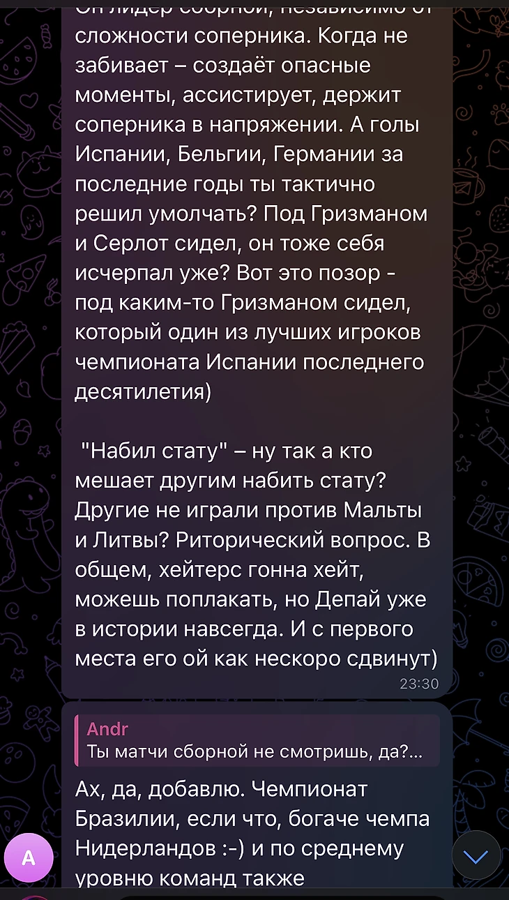А как вы считаете, значимый ли это показатель в нынешних реалиях и действительно ли Мемфис Депай заслужил звания легенды сборной?