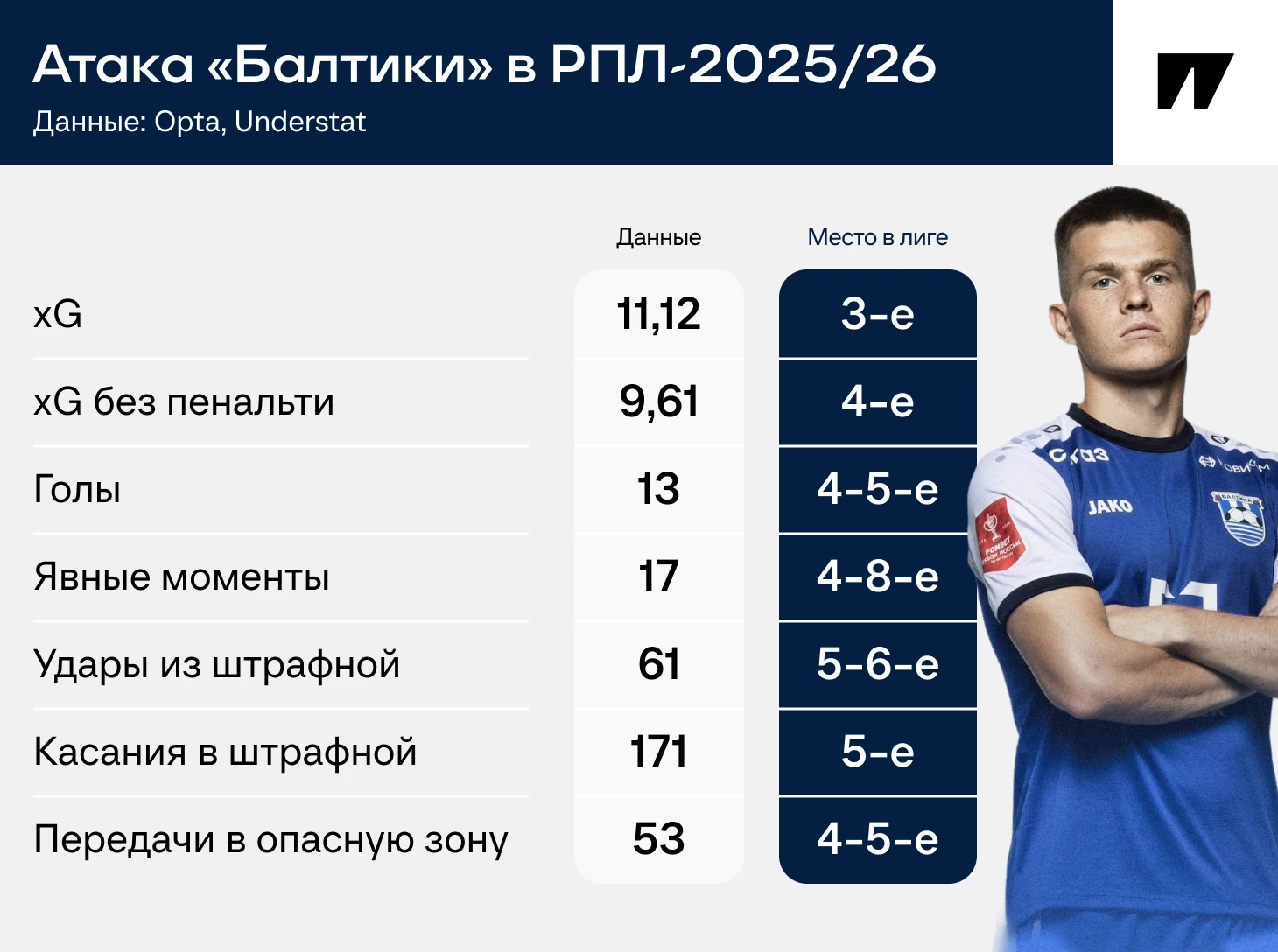 Перед стартом сезона было невозможно представить, что к сентябрьской паузе «Балтика» окажется в тройке. Более того, по атакующим метрикам калининградцы стабильно в топ-5 лучших в РПЛ.