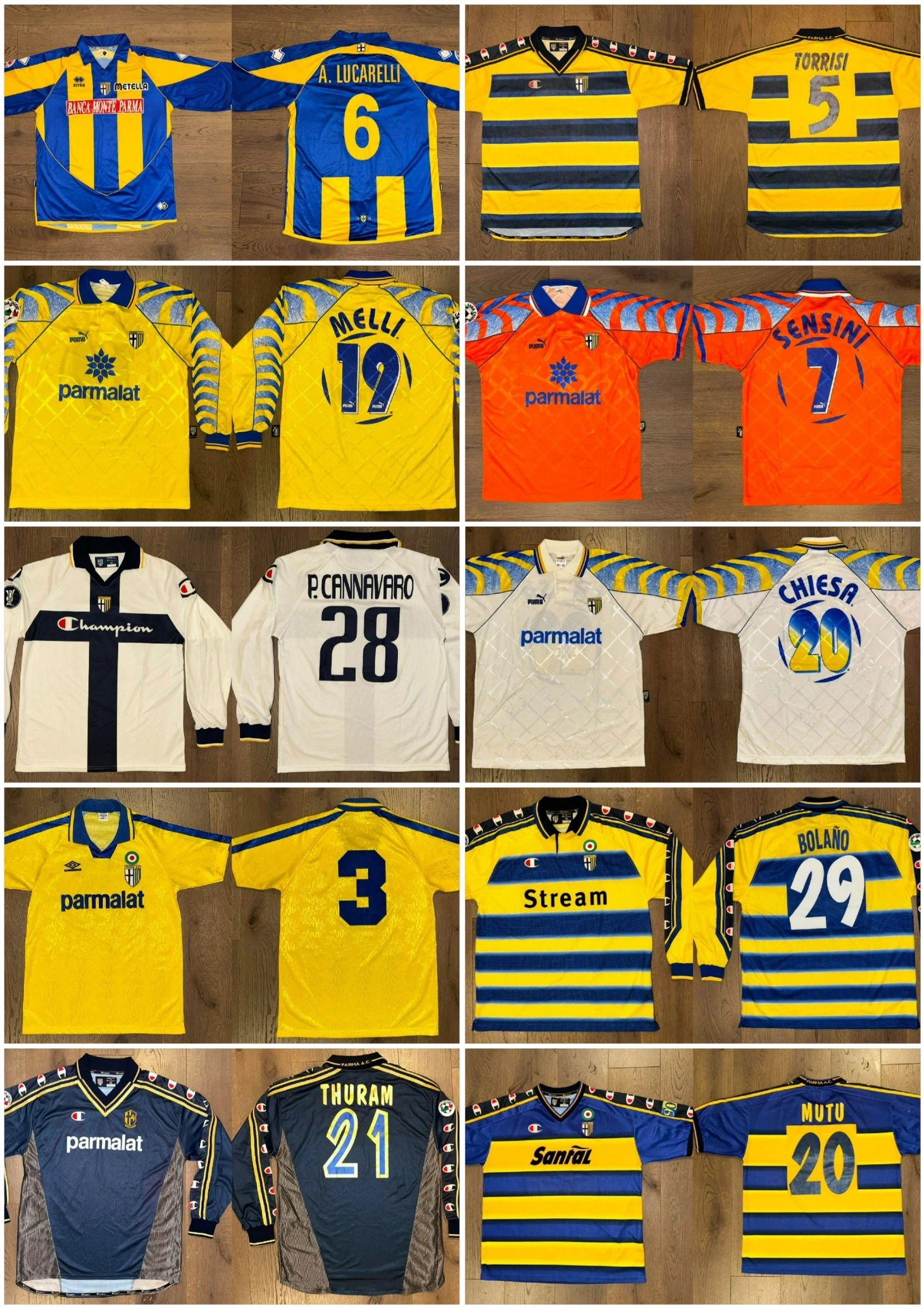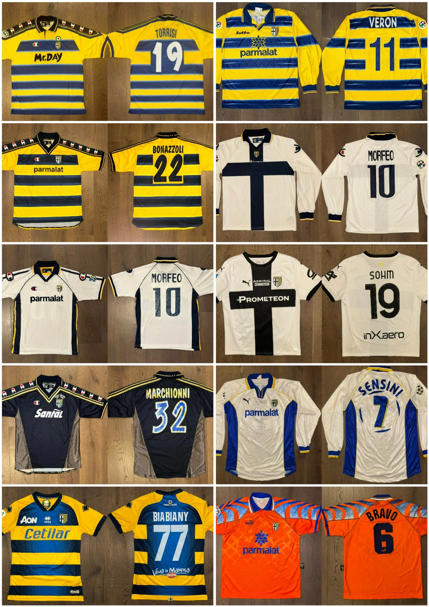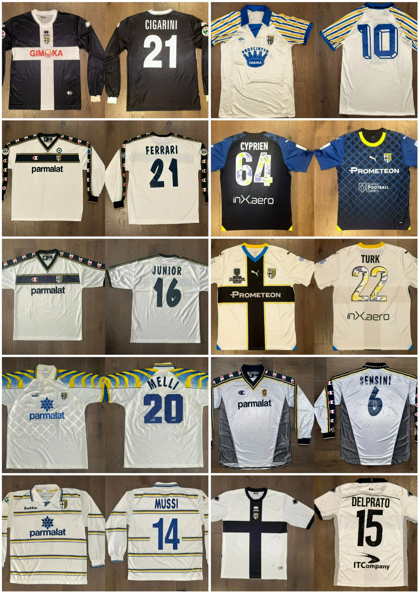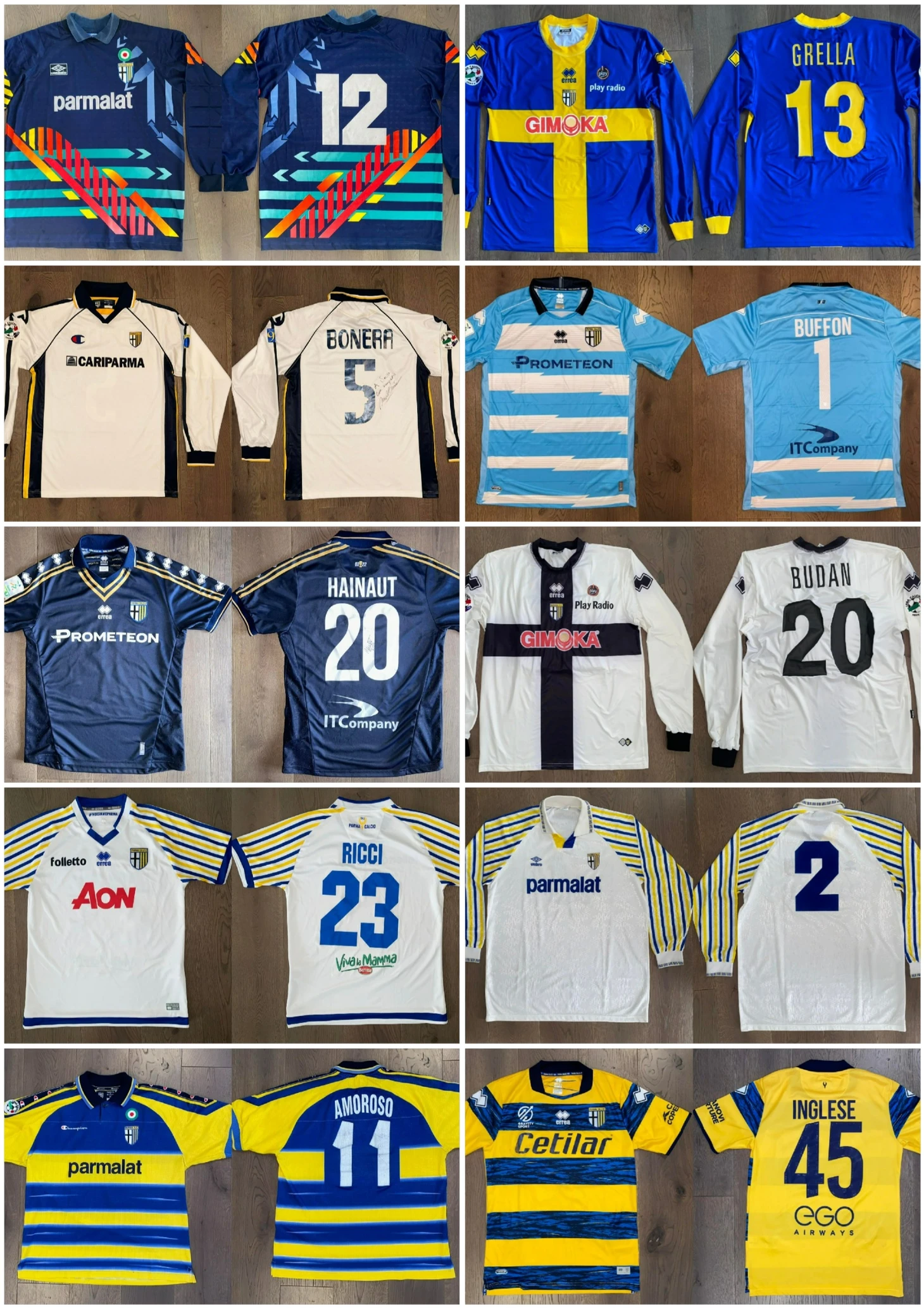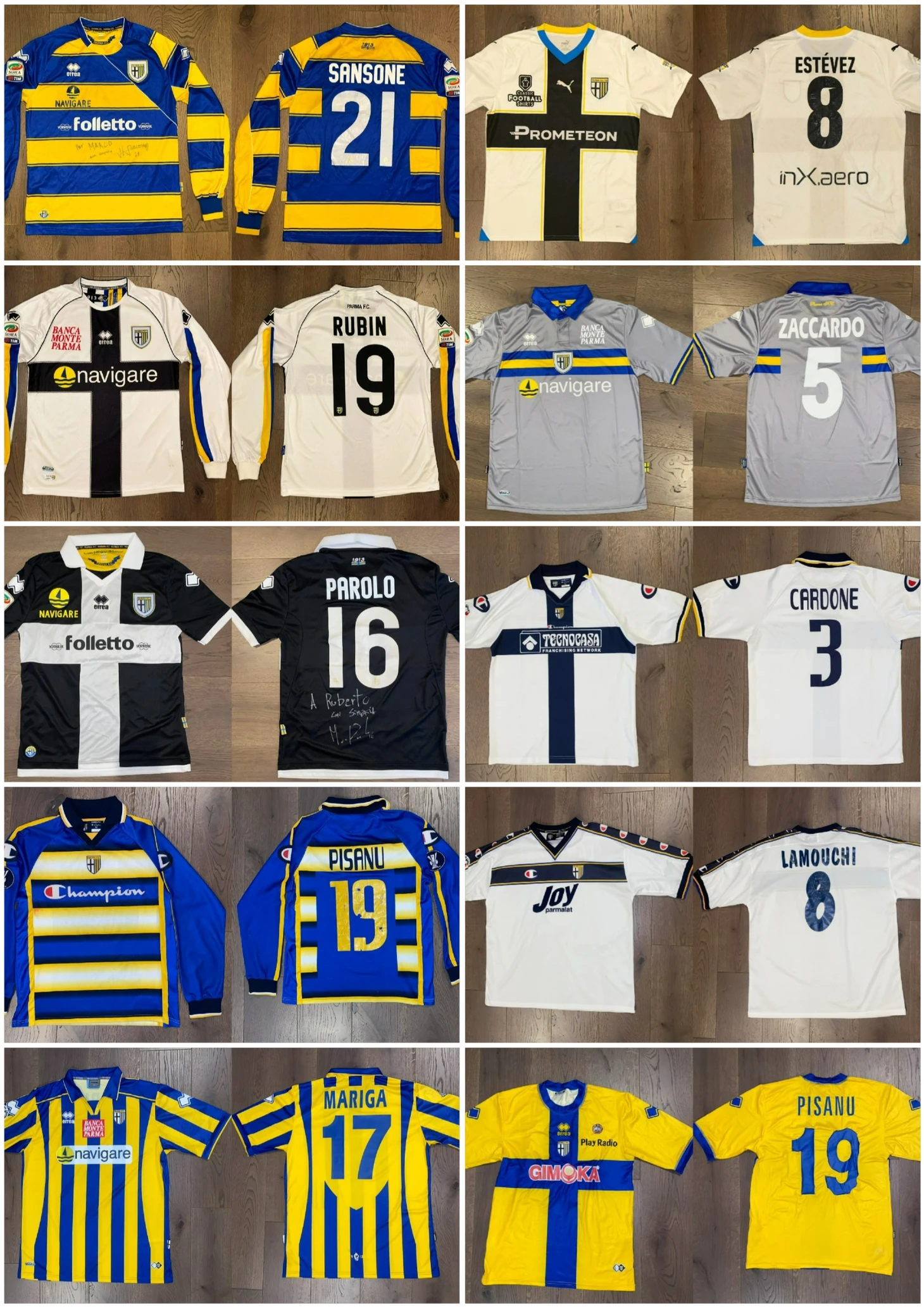 - Самая ценная футболка для сердца— это самая старая по годам из тех, что у меня есть, а именно, футболка сезона 1985/1986 «Парма»-«Санремезе», игрока Аугусто Габриэле. Матч состоялся 01 июня 1986 года и закончился 2:0 в пользу «Пармы».