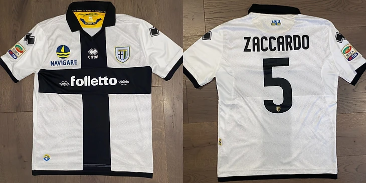 - Первой игровой майкой, которую я получил, была футболка сезона 2012/ 2013 года с фамилией Дзаккардо, в которой он играл в матче «Парма»-«Милан» 29 сентября 2012 года. Матч, который закончился со счетом 1:1. Футболка была подарена мне отцом Де Шильо, который живет до сих пор в моем городе и является тренером в моем спортзале. Сам он получил ее из клуба «Милан», после того, как Маттиа Де Шильо получил ее на поле после матча.
