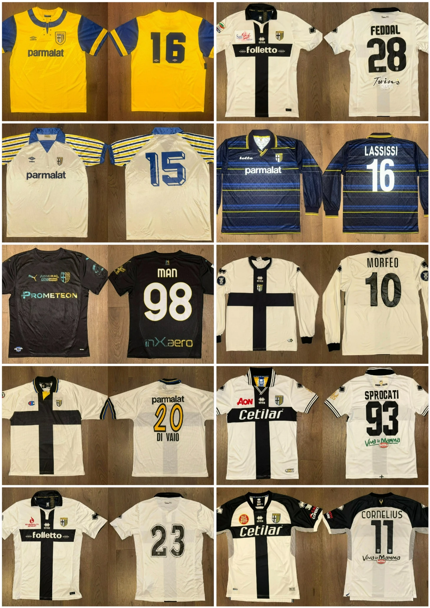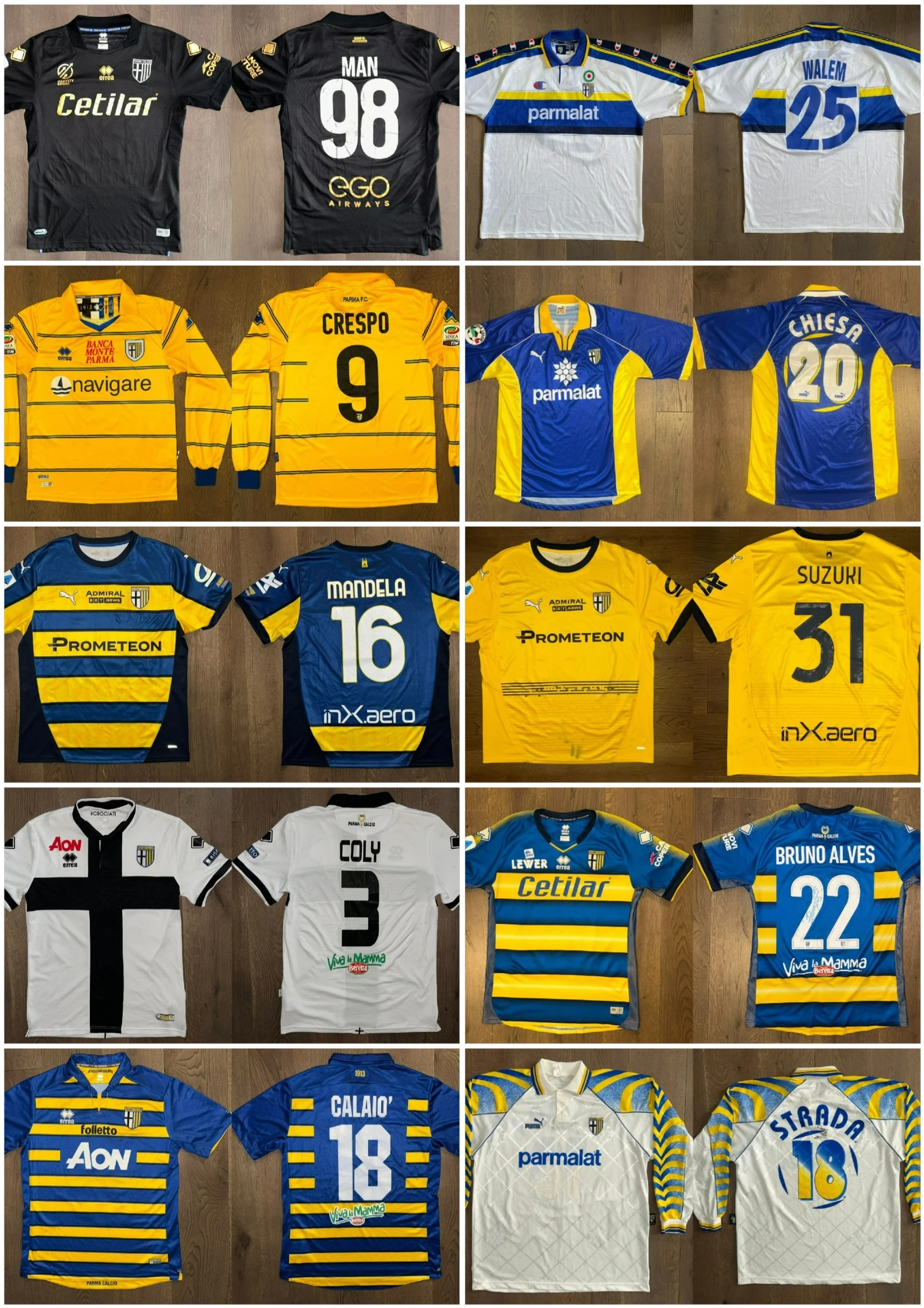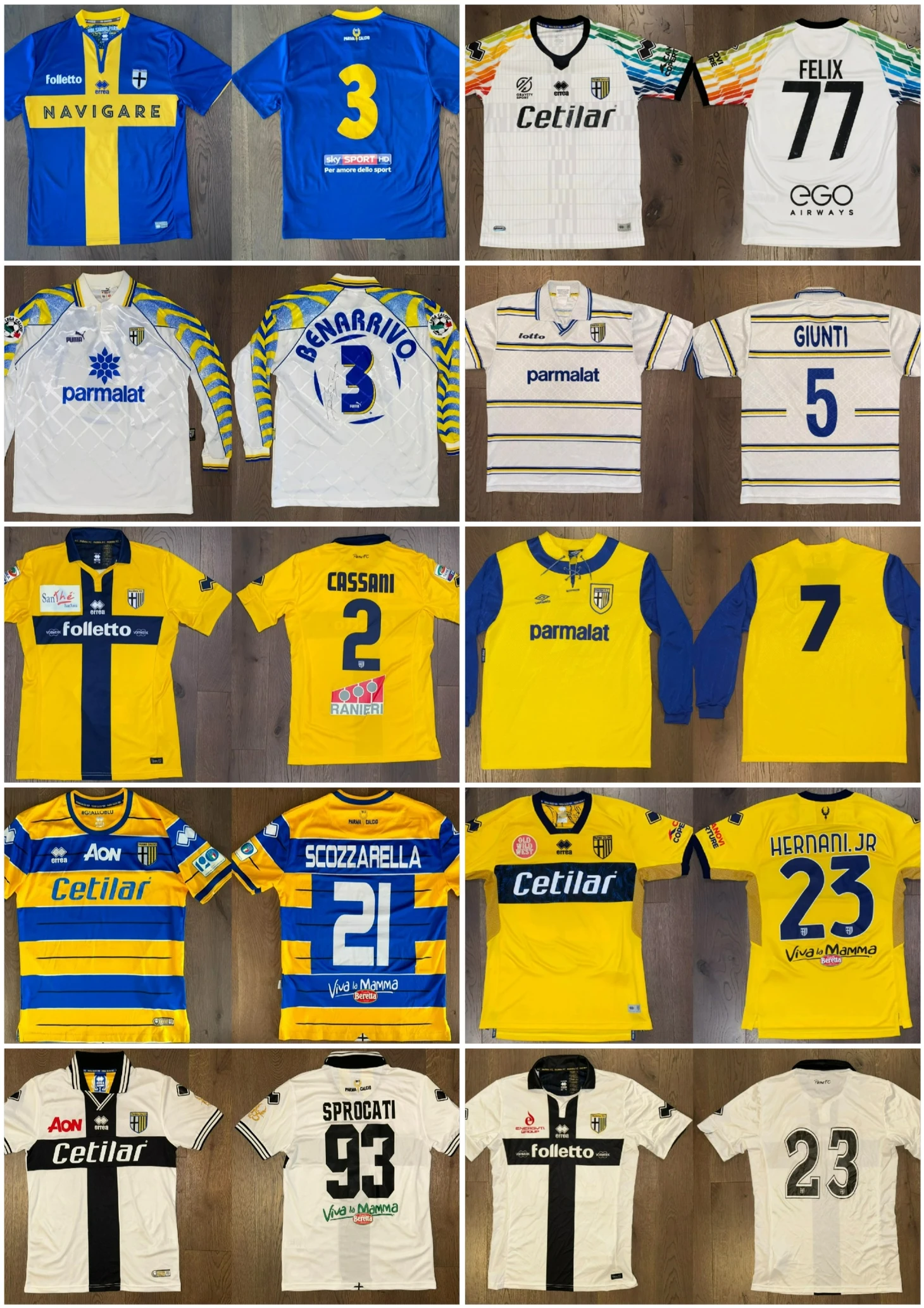 - На самом деле, я новичок в коллекционировании. У меня были футболки «Пармы», но я покупал их в магазинах, чтобы ходить в них на стадион. Я начал коллекционировать в 2021 году, поначалу не обращая внимания, магазинные это футболки или игровые. Затем, когда я начал выкладывать фотографии в социальные сети («Facebook»/»Instagram»)*, я познакомился с другими коллекционерами «Пармы», и они убедили меня перейти исключительно на игровые футболки. С этого момента я начал постоянно искать новые футболки, изучать детали, различия и особенности. Это переросло в настолько скрупулезную работу, что я создал файл со всеми различиями и всеми футболками в коллекции, который и сейчас веду.