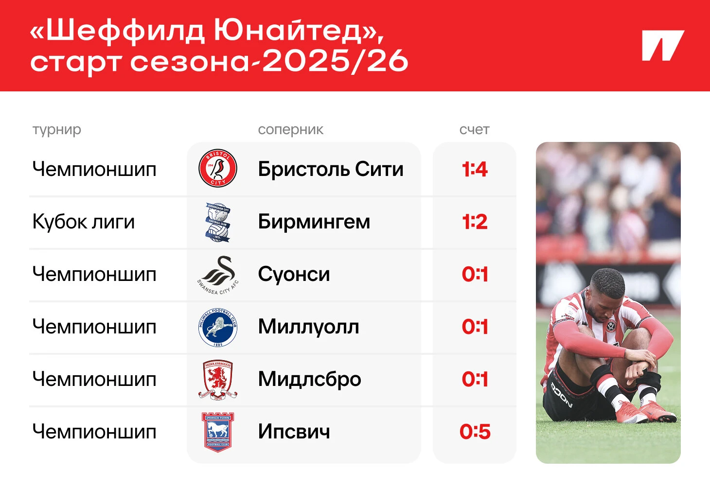 После шести поражений в шести матчах «Шеффилд Юнайтед» расстался с 42-летним тренером Рубеном Сельесом. Испанец пришел только в середине июня и продержался меньше трех месяцев.