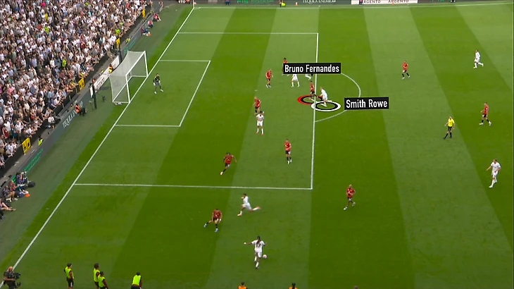 Проблемы у Бруну возникают, когда Каземиро в партнерах нет, а соперник перегружает опорную. На португальце намного больше ответственности и задач. В важный момент не справляется и теряет своего игрока. Против «Фулхэма» прозевал рывок Эмила Смита-Роу: