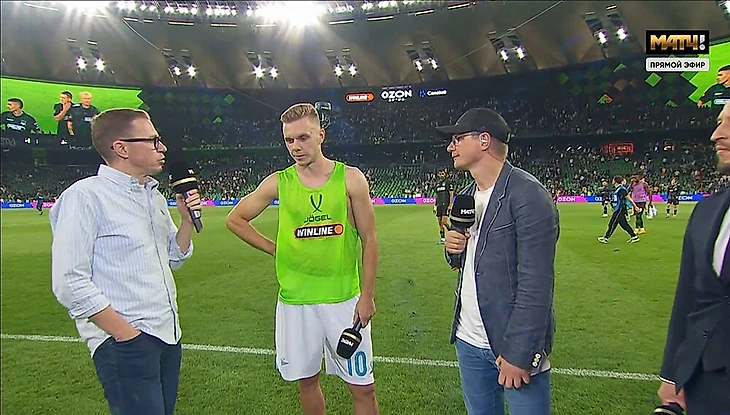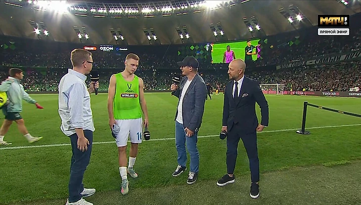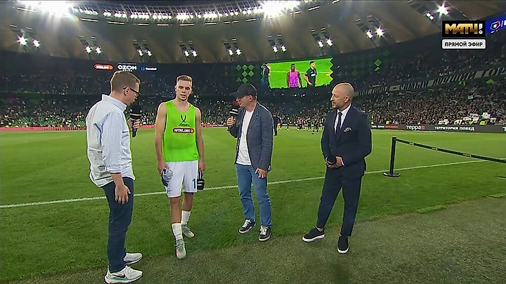 Глушенков сразу после матча пришел на бровку разговаривать о матче с Тимуром Журавелем и экспертами: там как раз был Аршавин, а еще Максим Бузникин.