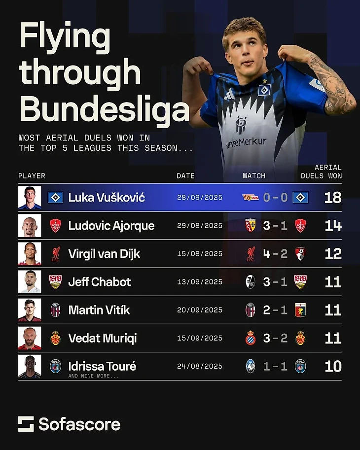 😦 18-летний Лука Вушкович выиграл рекордное количество воздушных единоборств в одном матче за последние пять лет