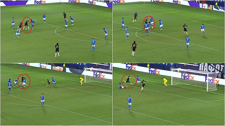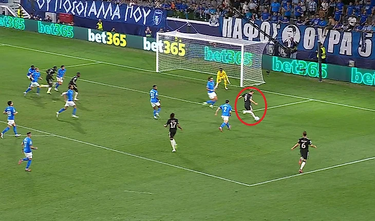 Принял мяч вообще за пределами штрафной, полез в гущу игроков «Пафоса», подхватил отскок и заодно пробил между ног вратарю. Так счет стал 4:0 в пользу «Баварии», хотя прошло чуть более получаса.