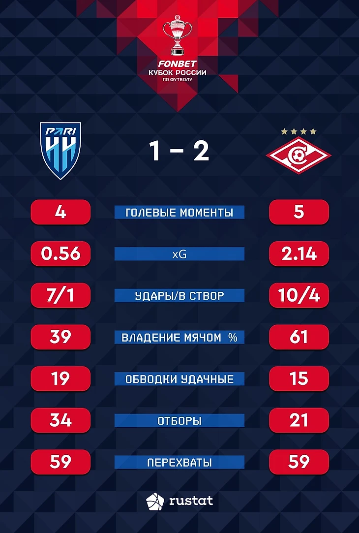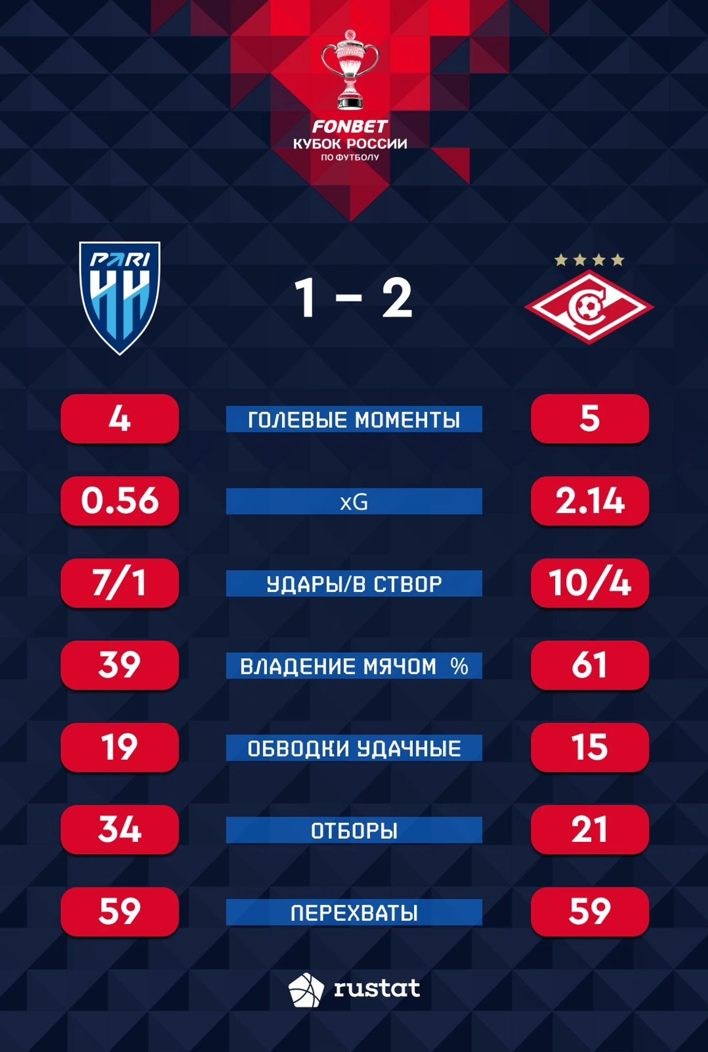 В рамках Кубка России Спартак играл в гостях с Пари НН. В случае победы в основное время Спартак мог обеспечить себе проход в Пути РПЛ.