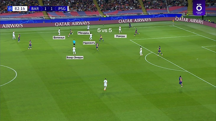 Нуну более чем справлялся с этим объемом работы. Мендеш был главной фигурой «Парижа» в продвижении мяча до самой концовки, и он этот статус оправдывал. Слаломы португальца стали абсолютным кошмаром для обороны «Барсы».