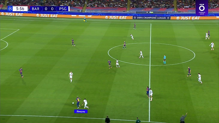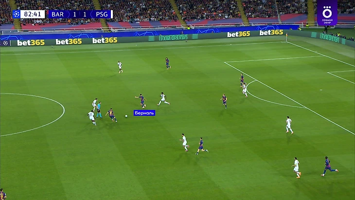 В обороне «каталонцы» делали акцент на левом краю соперника, ведь именно там со стартовых минут действовала главная сила «ПСЖ» — Брэдли Барколя. Против него Флик не постеснялся сдвоить фланг: