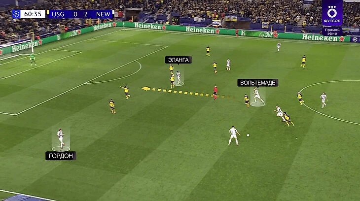 Манеру Вольтемаде здорово поддерживали вингеры – Энтони Эланга и Энтони Гордон. У каждого есть опыт игры в нападении. Оба хорошо распознавали моменты, когда нужно вбежать в зоны, которые освобождает Нико.