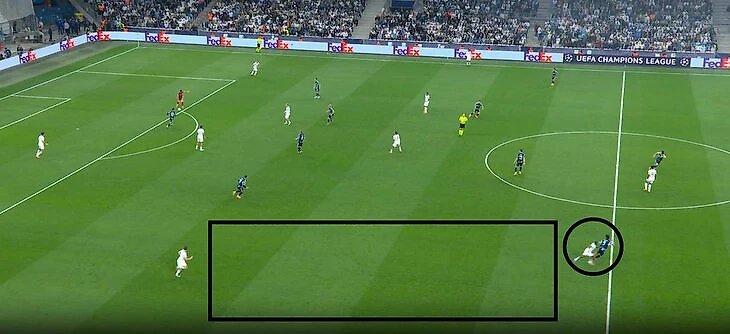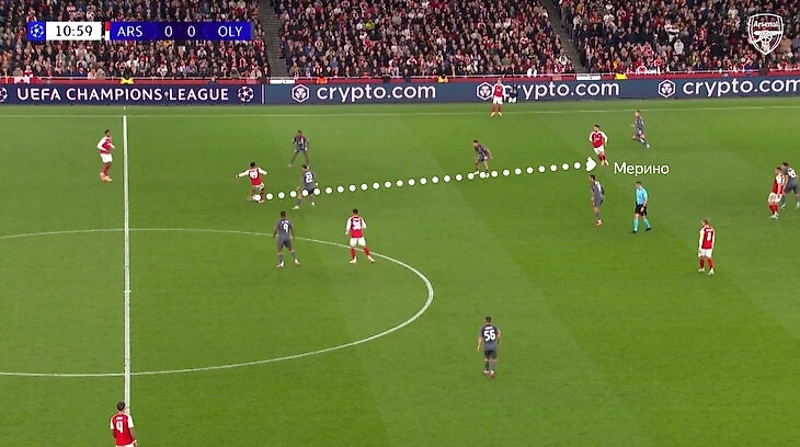 Рассказываем идею против »Аякса» (4:0): крайний нападающий делает рывок из глубокой и широкой позиции вперед и в центр, ловит на крючок защитника, который перестает быть частью командного прессинга и переходит на персональную опеку, у Бенжамена Павара открывается весь фланг, ну а Херонимо Рульи запросто исполняет туда парашют.