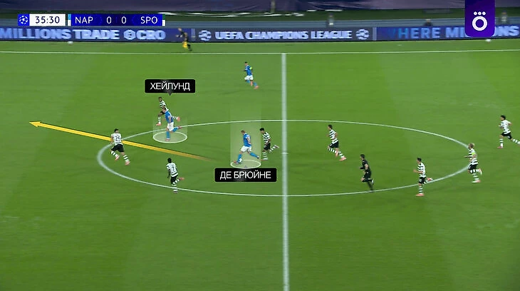 Эталон взаимодействия – первый гол «Наполи». Но моменты такого типажа встречались и до голевой атаки. Кевин замечает каждый такой рывок и идеально кормит партнеров пасами (возможно, в этом аспекте все еще лучший в мире).