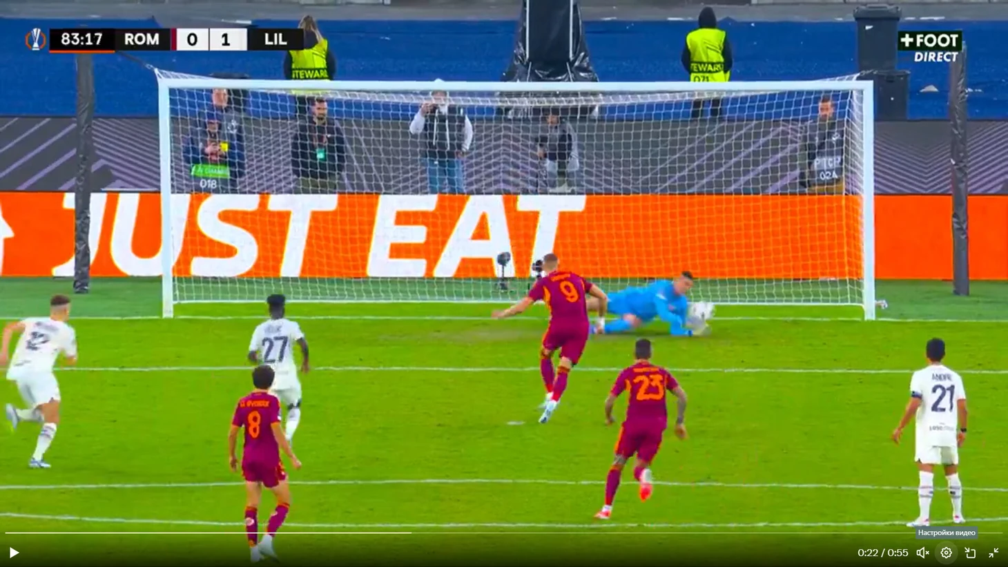 К мячу подошел уже Матиас Соуле и пробил влево. Но смена исполнителя не помогла «Роме» – Озер взял еще один удар, на этот раз сработал четко по правилам.