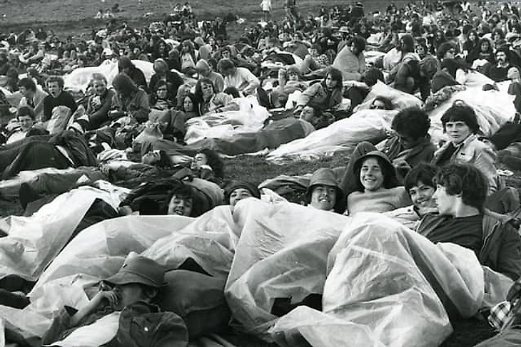 Чтобы успокоить публику из примерно 8000 человек, пришедших на концерт, было объявлено, что группа неизбежно задержалась в пути. Это сработало — по крайней мере, на какое-то время. Но впереди было еще хуже. Вместо ожидаемого солнечного света на фестивальную площадку обрушились проливные ливневые шквалы. Пытаясь защититься от дождя, посетители фестиваля стали надевать на себя мусорные пакеты, но ветер был настолько сильным, что вскоре они превратились в клочья полиэтилена.