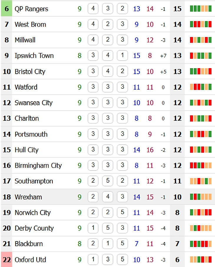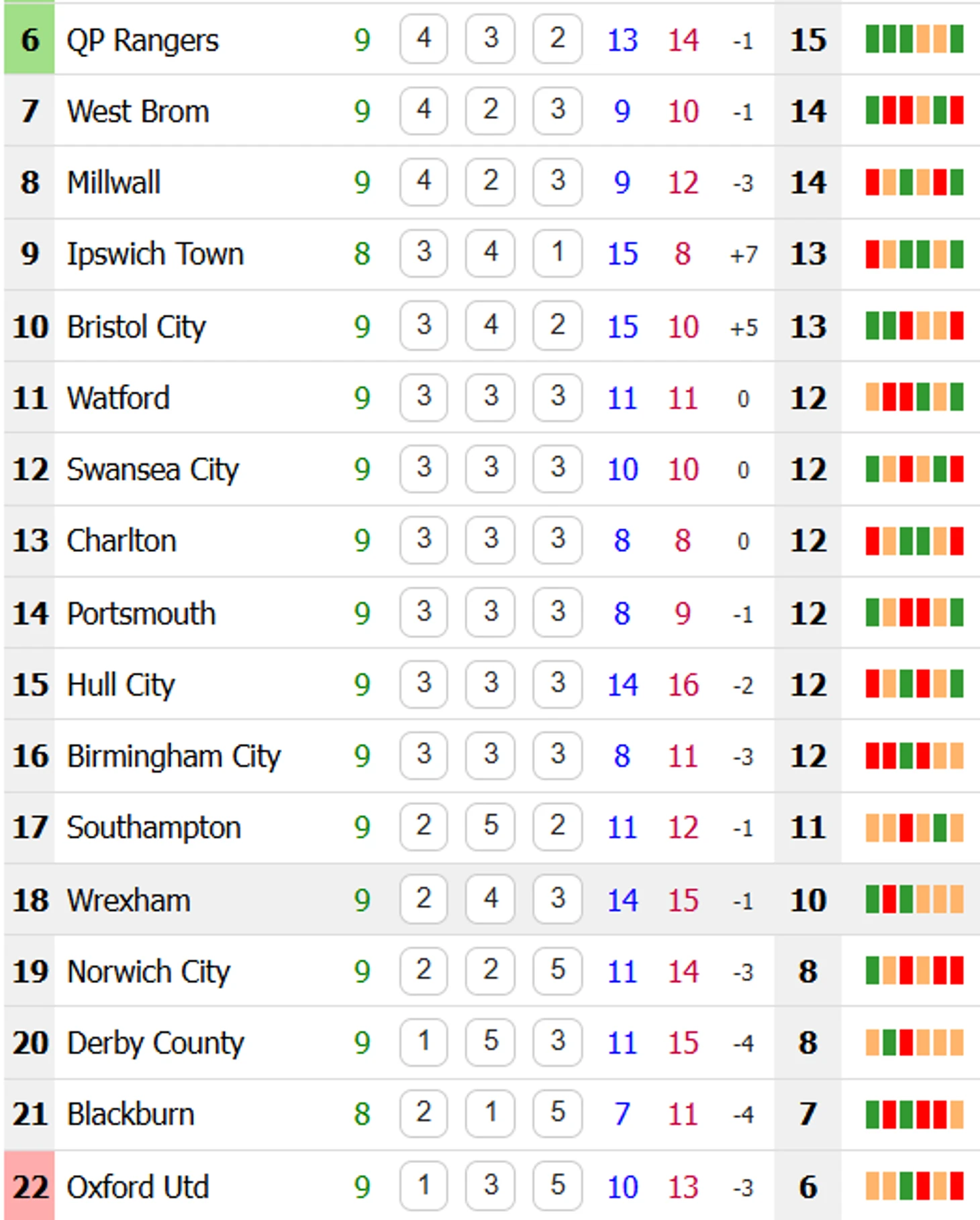 В турнире уверенно лидирует «Ковентри Сити» преследуемый «Мидлсбро», причем лидер остается единственной командой не знающей поражений с разницей забитых/пропущенных +20. А на дне хочется выделить прошлогоднего финалиста плей-офф «Шеффилд Юнайтед», который в результате уже решился на смену тренера пригласив обратно уволенного в июне тренера.