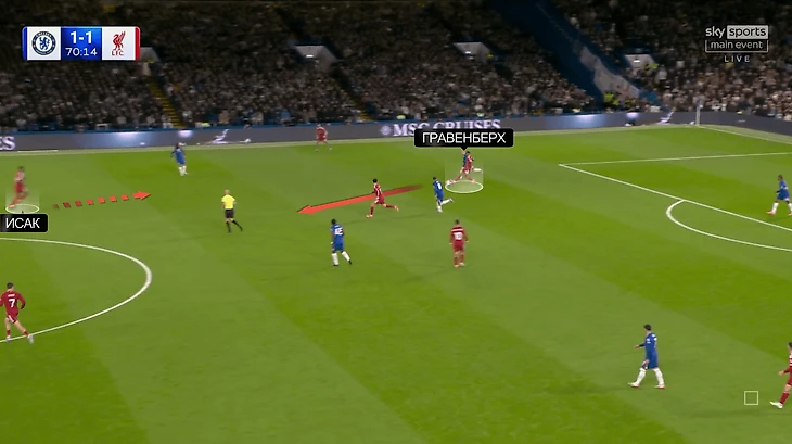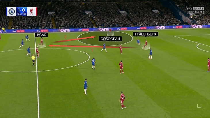 Эпизод с голом «Ливерпуля» – в зачетку Слоту. Помогли и качества Гравенберха, и движение Исака. Собослаи получил свободу и мог спокойно продвигать мяч.