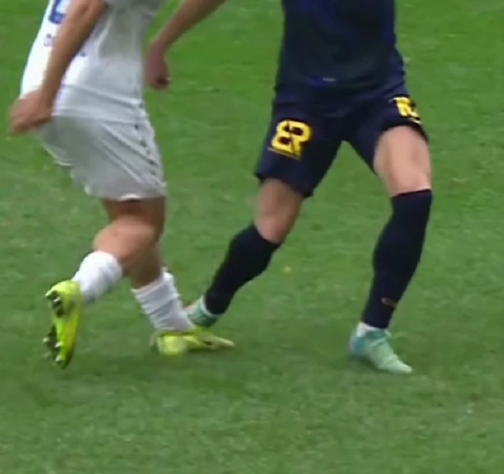 Спорить с тем, что контакт был, никто не будет - вопрос в обстоятельствах. Дело не только в том, что Чистяков видел этот момент, но и в его оценке действий фолившего против Ивана Жедсона (скрин показывает и воздействие правой ногой португальца на армейца, и попытки захвата руками)