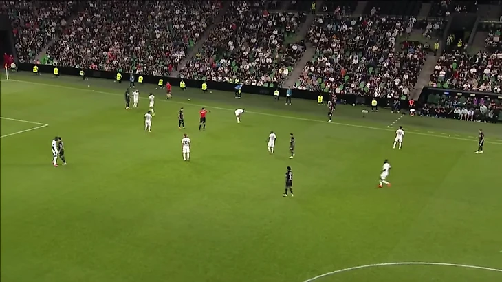 Все бы ничего, но через 8 секунд после отбора Ильин, который уже должен был быть в раздевалке из-за КК, забивает гол. На наш взгляд фол случился в одной АРР (attacking phase of play) по версии ДСИ, но не для Кзарцева. Очень долго он проверял его, но в конце концов решение Карасева о взятии ворот оставил в силе. Так сказались ксенофобия ВАР ассистента к гражданам Республики Беларусь (его старый враг Ганчаренко, как и нынешний тренер Пари НН Шпилевский - граждане братской республики), или просто нелюбовь к команде Пари НН - неизвестно, но факт остается фактом: лидерство в матче хозяевам он обеспечил. Во втором тайме Боселли все-таки счет сравнял великолепно исполненным штрафным - уже второй его гол в этом сезоне после такого стандарта. Но ничья продержалась недолго - через пару минут защитник гостей нарушил правила на Ежове и хозяева забили добиванием после пенальти. Претензии на КК для Кастильо здесь неуместны - хоть в мяч он и не играл, но в борьбу вступил