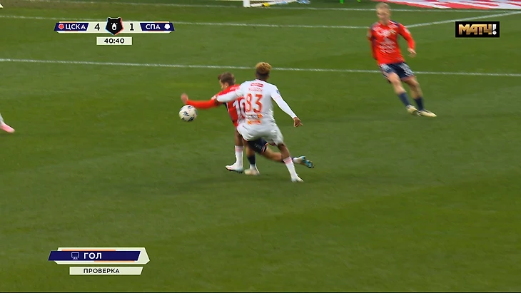 Начнем с самого очевидного момента. На 41-й минуте «армейцы» могли хоронить интригу четвертым голом, который был забит Круговым. Но видеоассистенты усмотрели игру рукой Облякова, после просмотра повтора Чистяков отменил взятие ворот.
