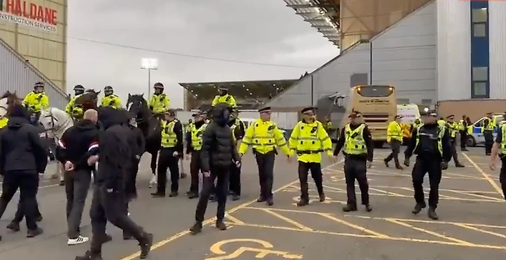 Фанаты заблокировали автобус, тренера вывели с черного хода при сопровождении полиции