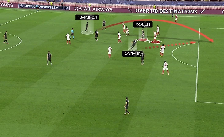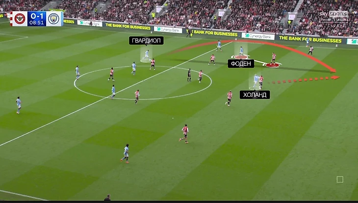 Сами голы – не только комплимент тренерам, но и доказательство важнейшей роли Фодена на отрезке. Фил специализируется не открываниях между линиями. Если ему дать свободу – накажет через быстрый разворот (посмотрите первый гол «МЮ» в дерби). Если на него выдвинется защитник – откроется зона, которой может воспользоваться Холанд.